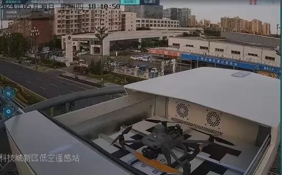 在新區有這樣一座特殊的“機場”——它坐落在園興西街的路燈桿上,外形像一個“四方盒子”。“盒子”打開,停放在里面的無人機即可啟動騰空,按設定航線執行巡檢任務。